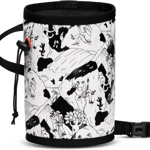 • Chalk Bag: Designed with a stiff rim for easy use, 2 loops for attaching onto belts or clips, a cord and toggle closer, and lined with nylon and fleece. This chalk bag is 6in tall and 5in in diameter and will hold any of our chalk balls or a full 2oz block chalk!